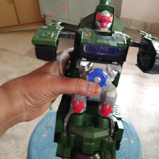 Da, se transformă automat! Nu trebuie să faci nimic – doar îl pornești și se schimbă singur din tanc în robot și înapoi.
